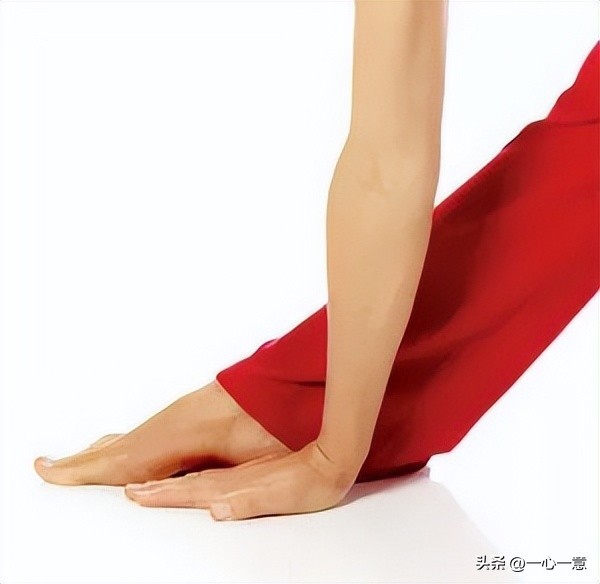 5. 手臂的摆放亦有其道。上下两臂需成一直线,指向天空的手指尖更需向上舒展。下方手臂可依个人情况放在小腿、脚踝、手指勾住脚趾或砖上,但需避免放在膝盖上并向下压迫膝盖。