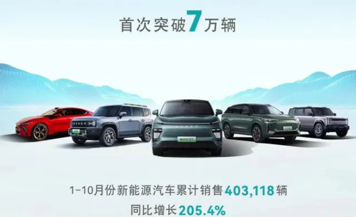 奇瑞控股集团同样表现出色,10月销售汽车272155辆,同比增长35.9%。其中,新能源汽车销量高达71330辆,同比增长342.1%,首次突破7万辆大关;出口销量也达到111922辆,同比增长18.8%。今年1-10月,奇瑞累计销量已突破202万辆。
