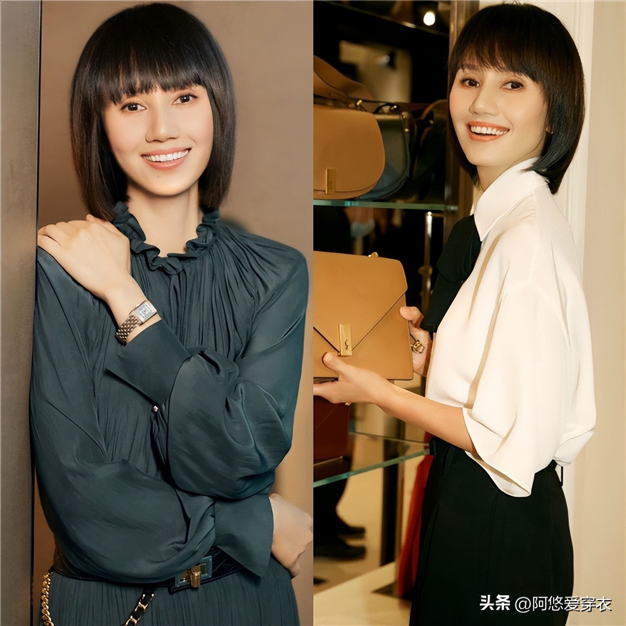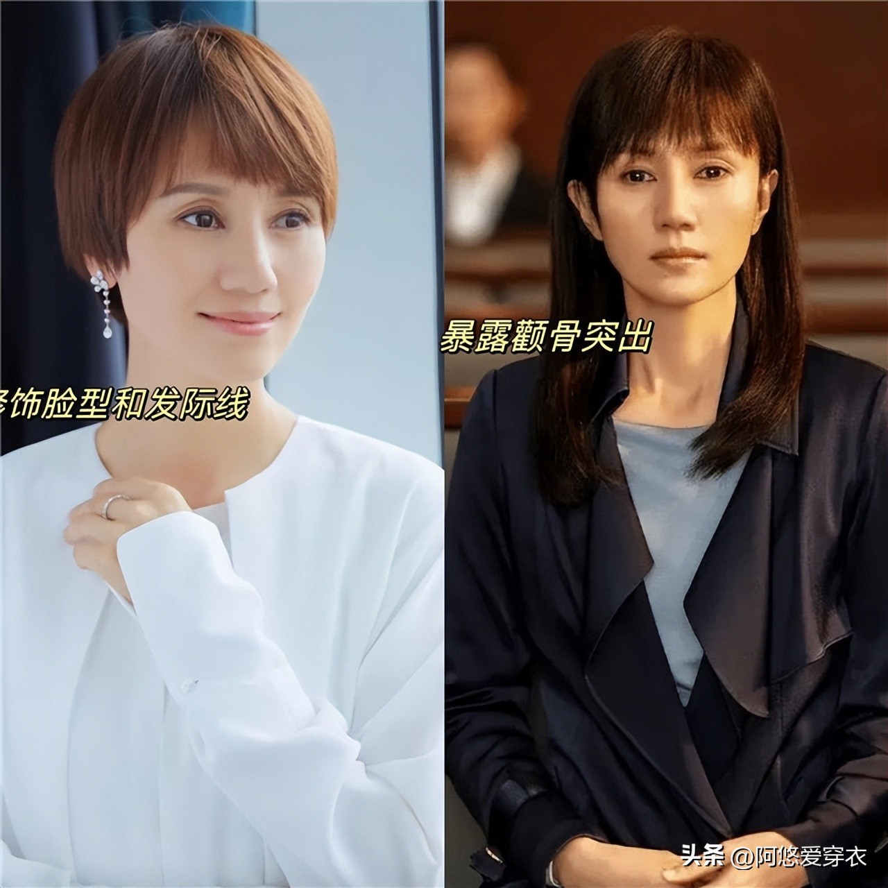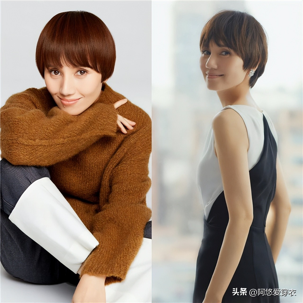 (时髦穿搭+短发VS老气长发+穿搭)