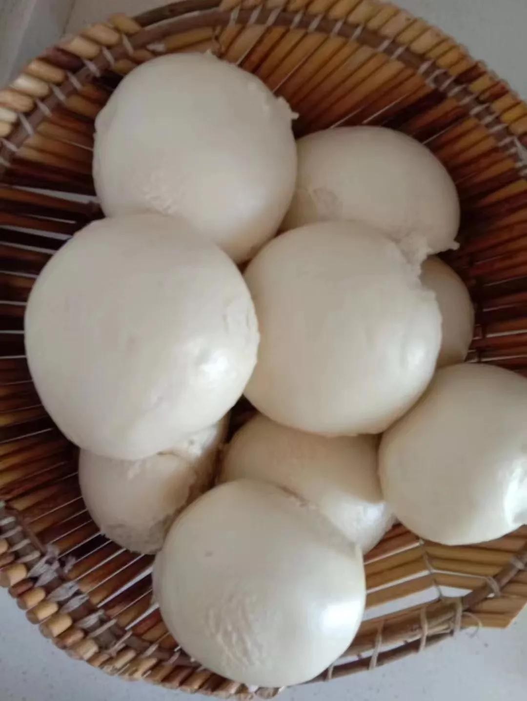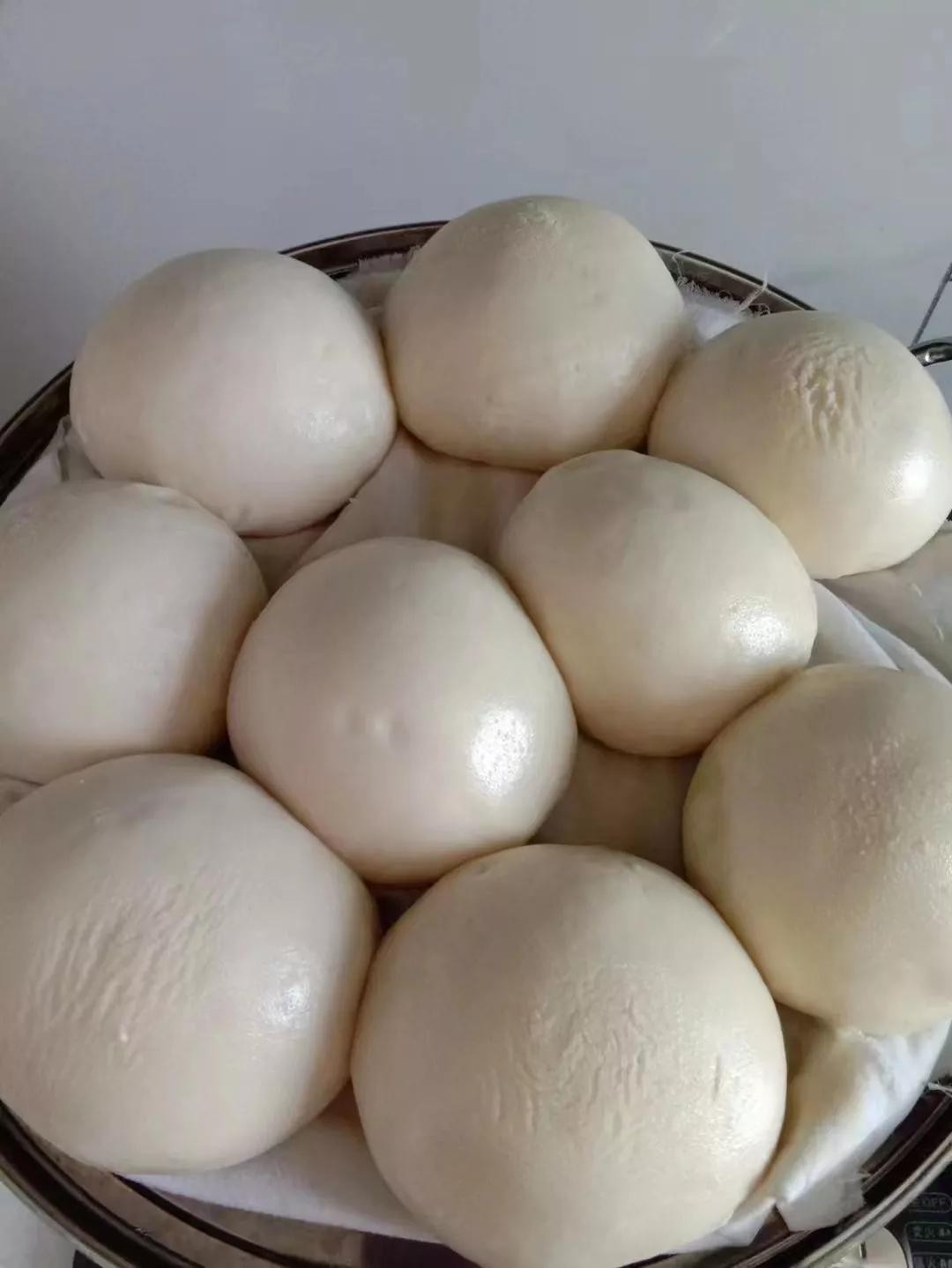 第四步:二次醒发时间一般20分钟左右,气温低的地方时间要长一点,当看到馒头变得大了并且很蓬松说明醒发好了。放在锅里开蒸(我一般用凉水),大火蒸十几分钟后改小火蒸15分钟关火,关火后不要马上开盖,再焖约3分钟。打开盖子,取出馒头即可食用。
