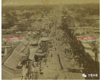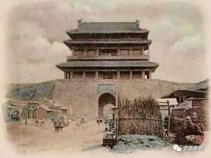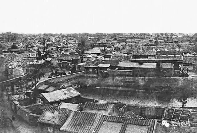 清末立体照片,北京东直门城楼上遥望鼓楼。