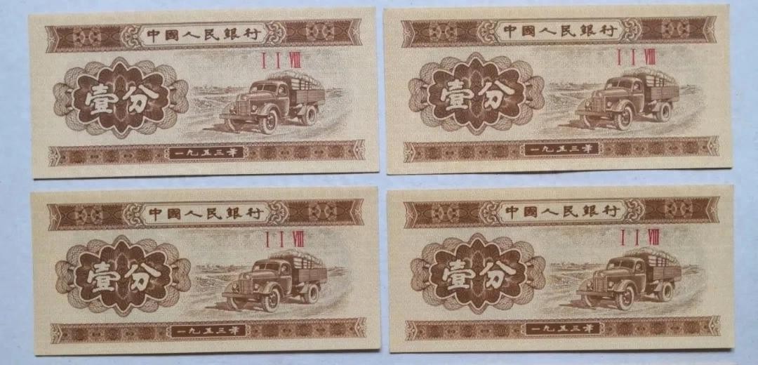 一分纸币有两种版本,一种是1953年版的长号码(罗马数字加阿拉伯数字编号)一分纸币,另一种是80年代再版的只有罗马数字编号的一分纸币。
