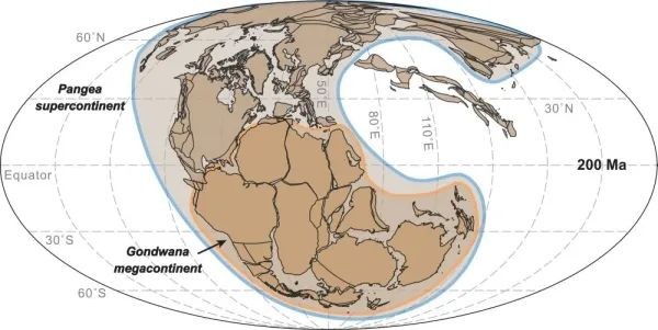图1.潘吉亚超大陆和冈瓦纳巨大陆的古地理关系图