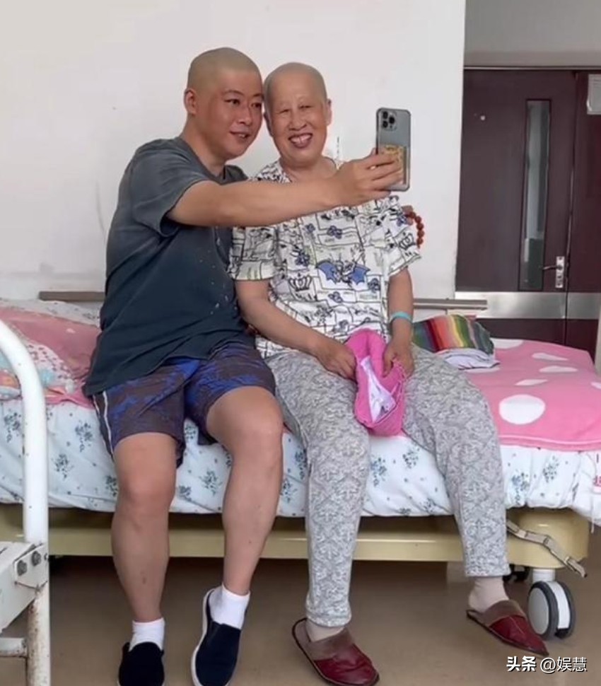 在病床前,母子俩晒出光头合照,画面看上去既轻松又温馨。