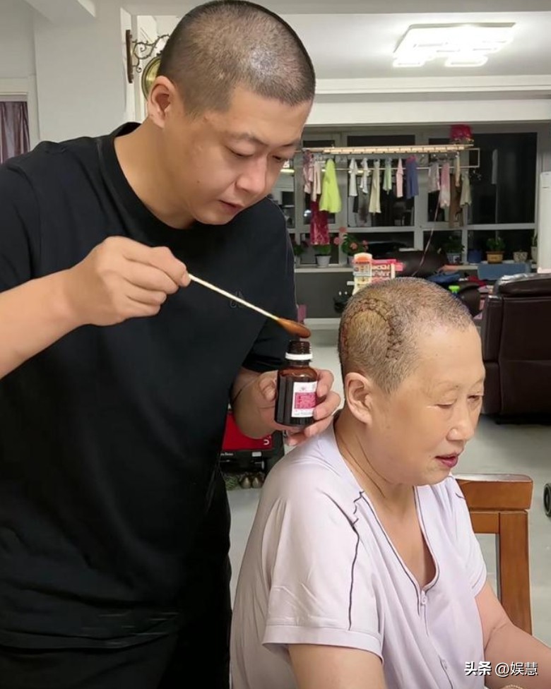 为了让母亲宽心,谢永强陪母亲一起剃光头,这份孝心令网友们感动不已。