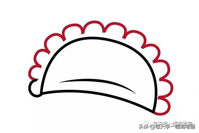 饺子简笔画步骤三:围绕半圆把剩下的花边画完。