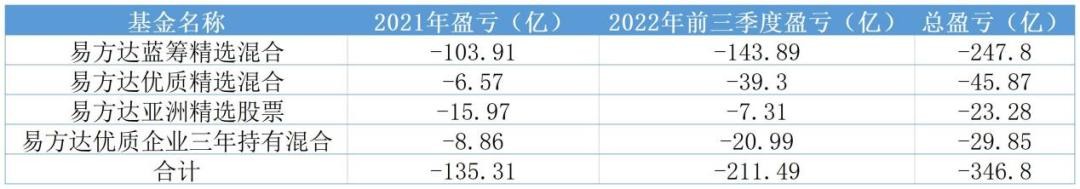 先来简单算个账,根据财报数据统计,2021年整年再加上2022年前三个季度,一年多的时间里,张坤“替”基民亏了346.8亿,2022年二季度的盈利已经抵消了一部分亏损。