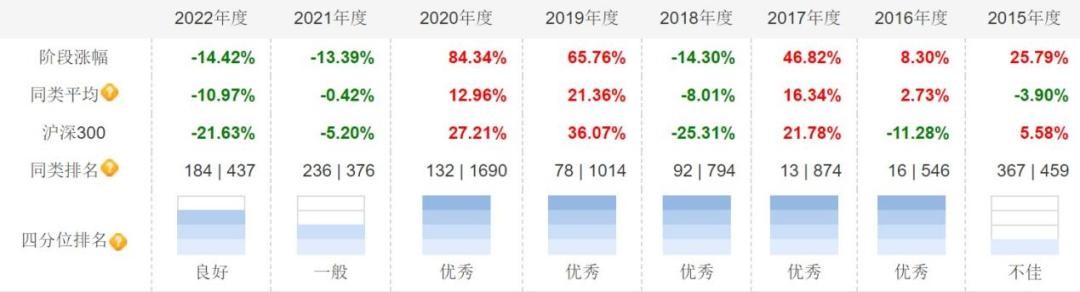 以易方达优质精选为例,2022年的亏损一度达到36.86%,好在去年最后两个月出现了大逆转,年度跌幅缩小至-14.42%,排名也有所上升,来到良好之列。