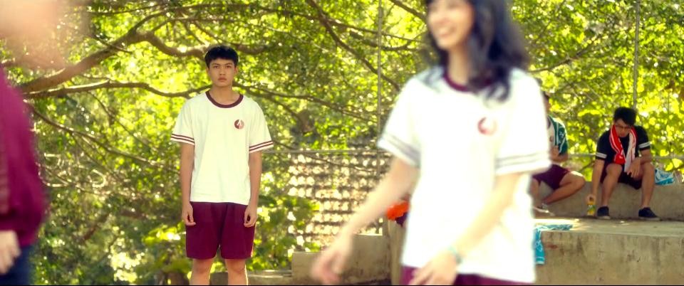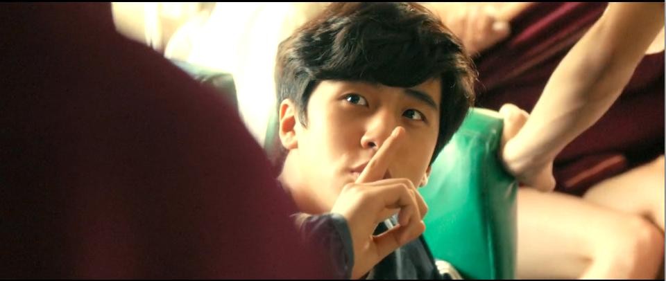 张诚和同学一起乘坐校车,正当他习惯性地偷瞄贝贝,却发现贝贝没在座位上。看了一圈,发现校车后排用校服做成的帘子笼罩着。