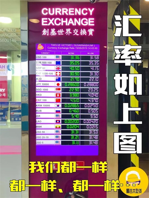 而素万纳普机场出关的小伙伴们,还是有救星的!在你出关前,机场的汇率和廊曼机场一样低,这个不用说。但是,当你走到机场快线旁边,就可以看到很多的钱庄啦,他们的汇率都是一样的。