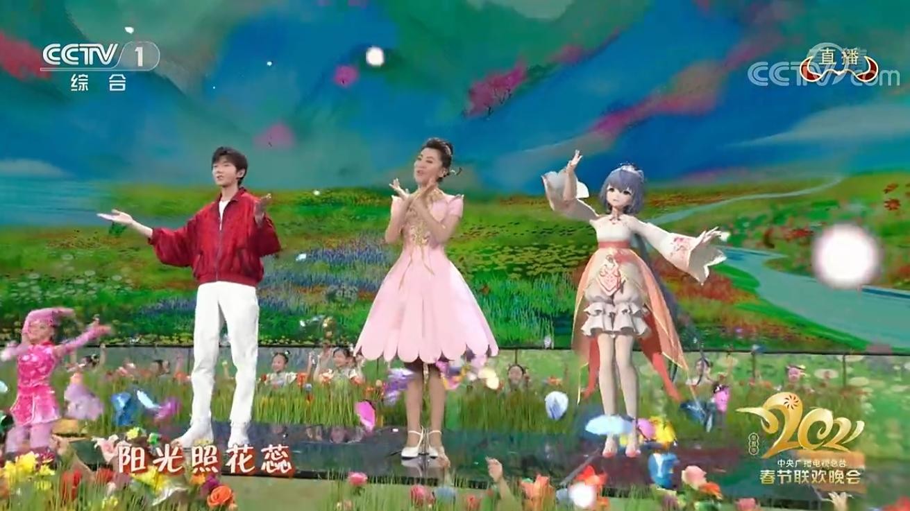 虚拟偶像洛天依亮相春晚。(图/中国央视新闻视频截图)