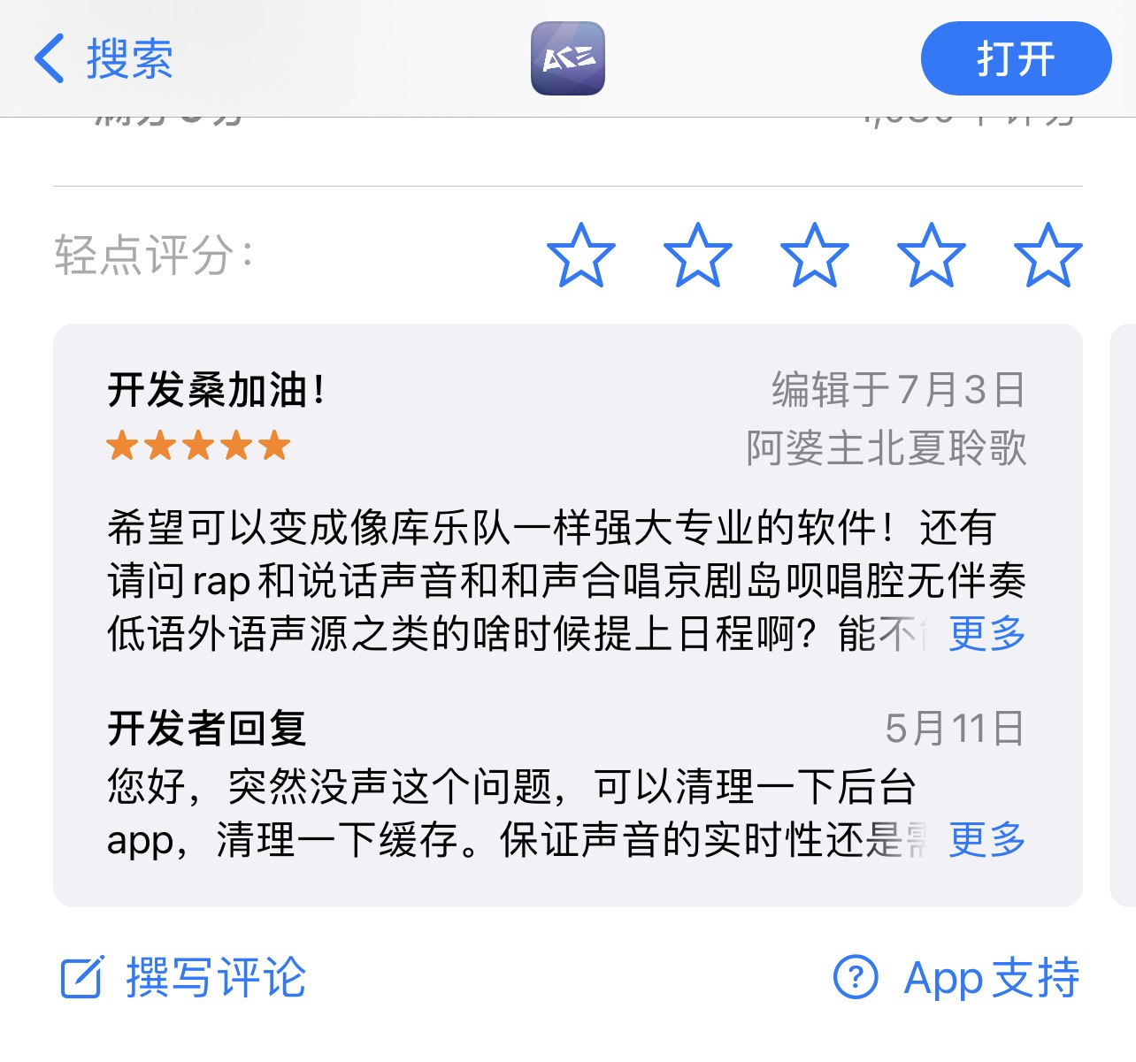 苹果app store上ACE音乐歌姬的评论。(图/手机截图)