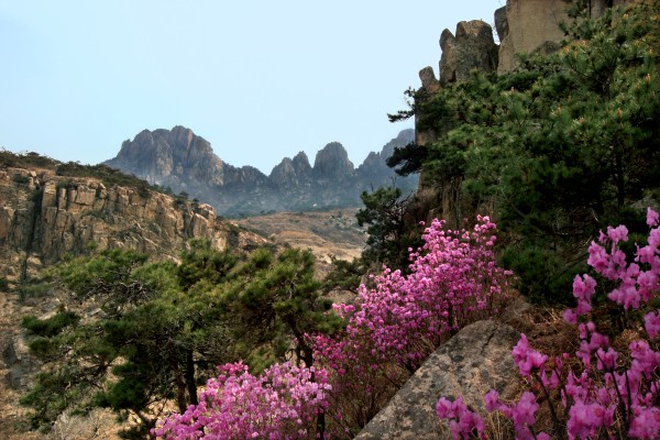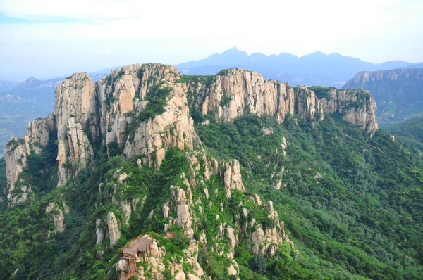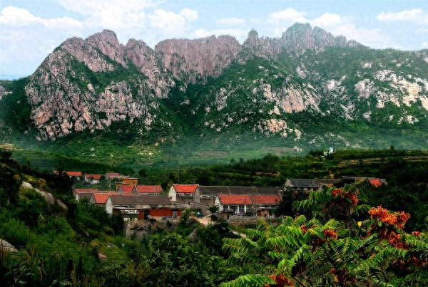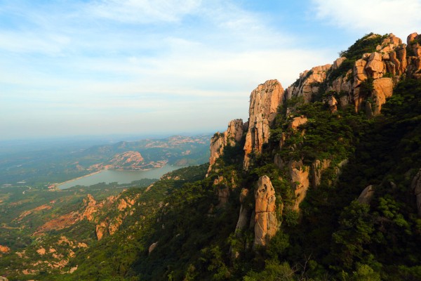 天崮山矗立于栖霞市西北端的苏家店镇,由五座山峰组成,分别是“香炉顶、插旗顶、南崮、鸳鸯峰和观音峰”,这也恰与太极五行的金、木、水、火、土相合,当地百姓认作是“福、禄、寿、喜、财”五座吉祥之山。