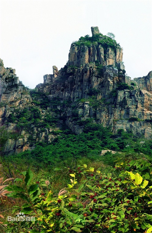 插旗顶。天崮山的主峰,唐王东征之时,将帅旗插于峰顶。丹崖绝壁,巧石灵动,“江北小石林”。