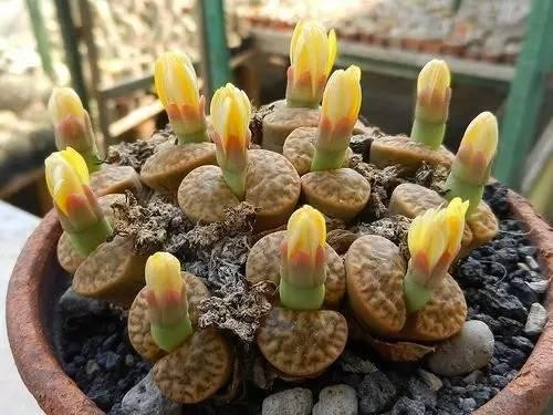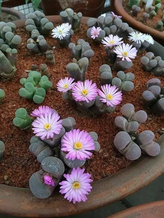 此乃石头花,又叫做石生花,它的外形酷像彩色的鹅卵石!开出来来,就是石头开花一般,结合石头花盆,楞楞分不清哪颗是石头,哪颗是花!