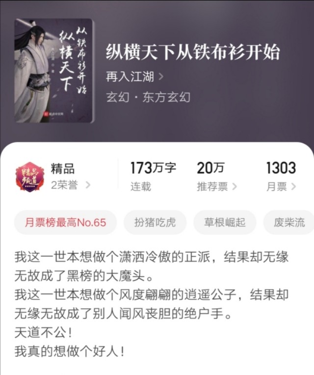 这一本很搞笑,也是成了大魔头,却言之凿凿说自己想做个好人(好人这个词都被玩坏了),一招铁布衫战遍天下无敌手(因为打不动),热血爽文,不费脑,还很幽默。