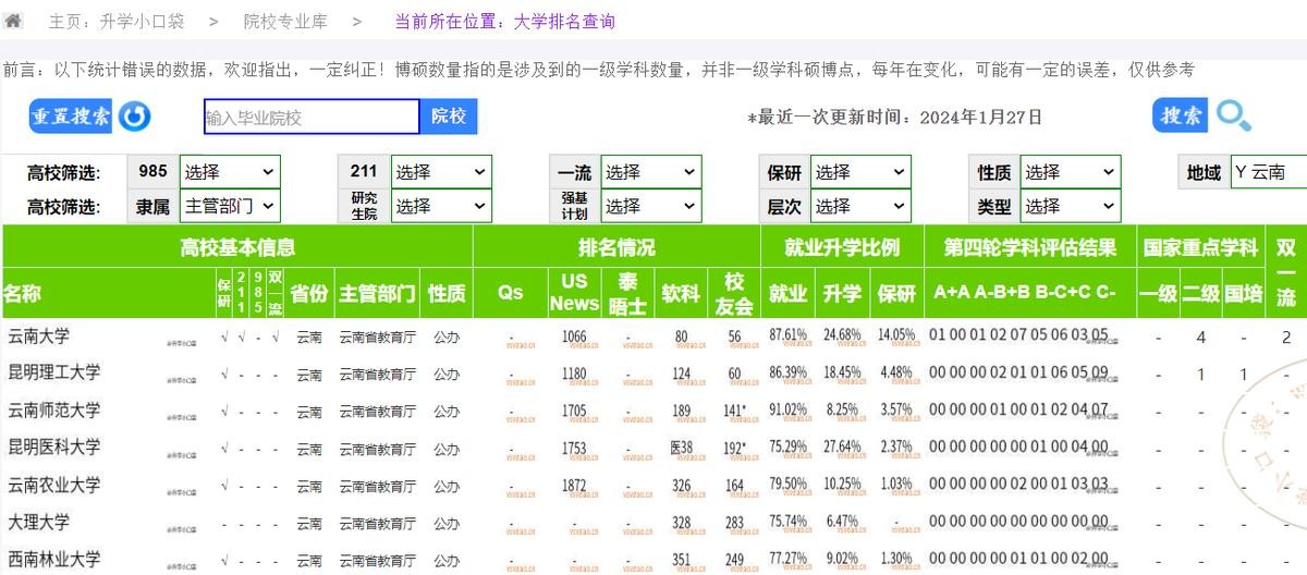 在云南这片美丽的土地上,高等教育事业蓬勃发展,众多高校以其独特的魅力和实力,为云南乃至全国培养了大批优秀人才。近日,关于云南高校2024年全国排名的消息引起了广泛关注。其中,云南大学以第70名的成绩位列前茅,展现了其在高等教育领域的卓越成就。