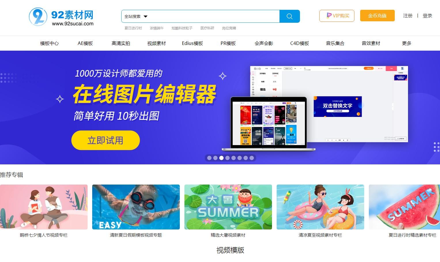 92素材网也是一个综合性素材网站,部分模板免费,免费的模板质量一般,但对于新手来说,足够了。