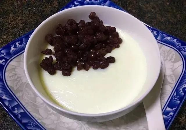 3.倒入干净的碗中晾至微温。(刚倒碗里已出现奶皮,这就是好牛奶应有的底气,一般牛奶还真没法比)
