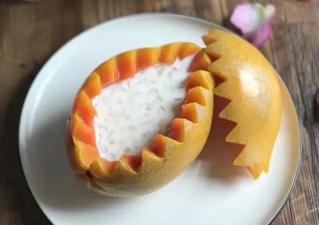 4.木瓜切去顶去瓤,加入煮好的雪蛤炖20分钟即可