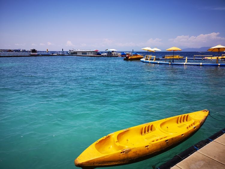 岛上可游玩的各种水上项目很多,包括潜水、水上冲浪、探秘海底世界等。我和弟弟妹妹去潜水,做甜甜圈和香蕉船,美轮美奂。