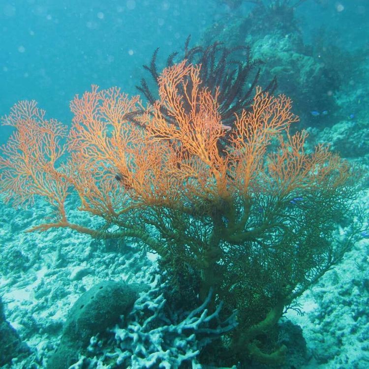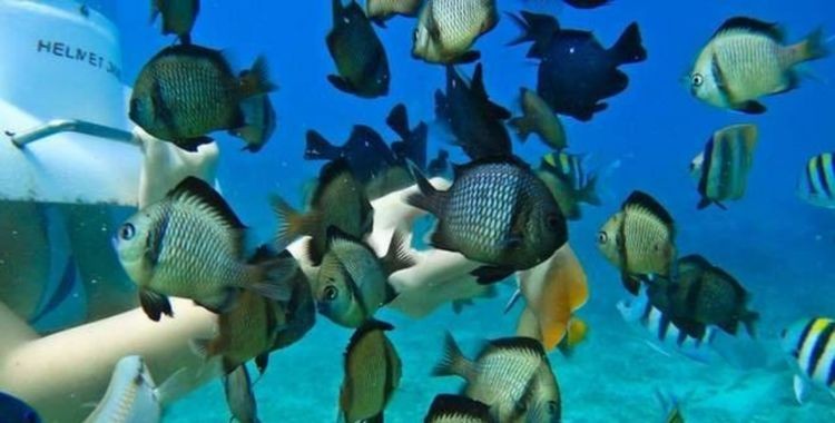 蓝梦岛水下生物放眼望去,清晰可见,岛上椰树茂盛,居民生活安详和谐。