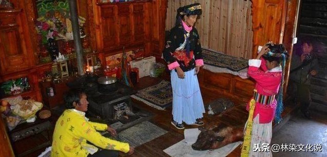 穿裙礼:由母亲主持仪式,少女踩在猪膘和粮食口袋上,由母亲为少女穿上成年服饰。仪式后,少女要呼唤狗进屋,由她给狗喂一团饭和一块猪膘肉,表达对狗的感谢。(据说人可以长寿是因为狗为人们续命)