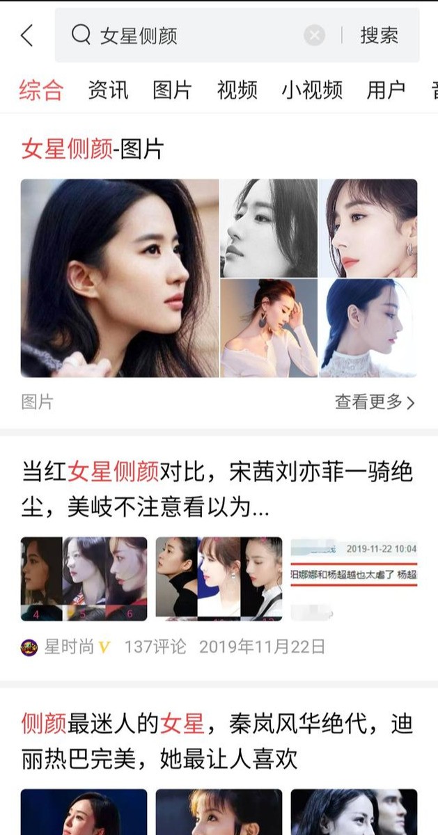 另外,小伙伴们可以直接在今日头条APP最上方的搜索框内输入“女星侧颜”,就能找到更多的女星侧颜美照了,如果你有找到更漂亮的她们,不要忘记在评论里发给大家看看哟!