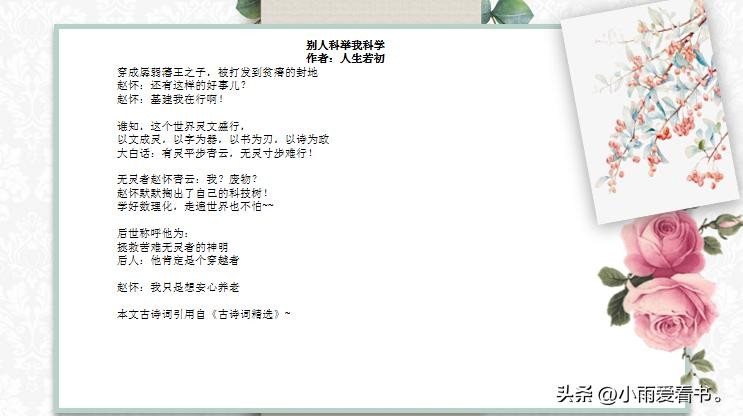 嗨喽!大家好,我是小雨爱看书,长年老书虫,向大家推荐一些精彩小说。大家有什么好文或者想看的文都可以在文章下面留言哦。今天为大家推荐主角考科举文: