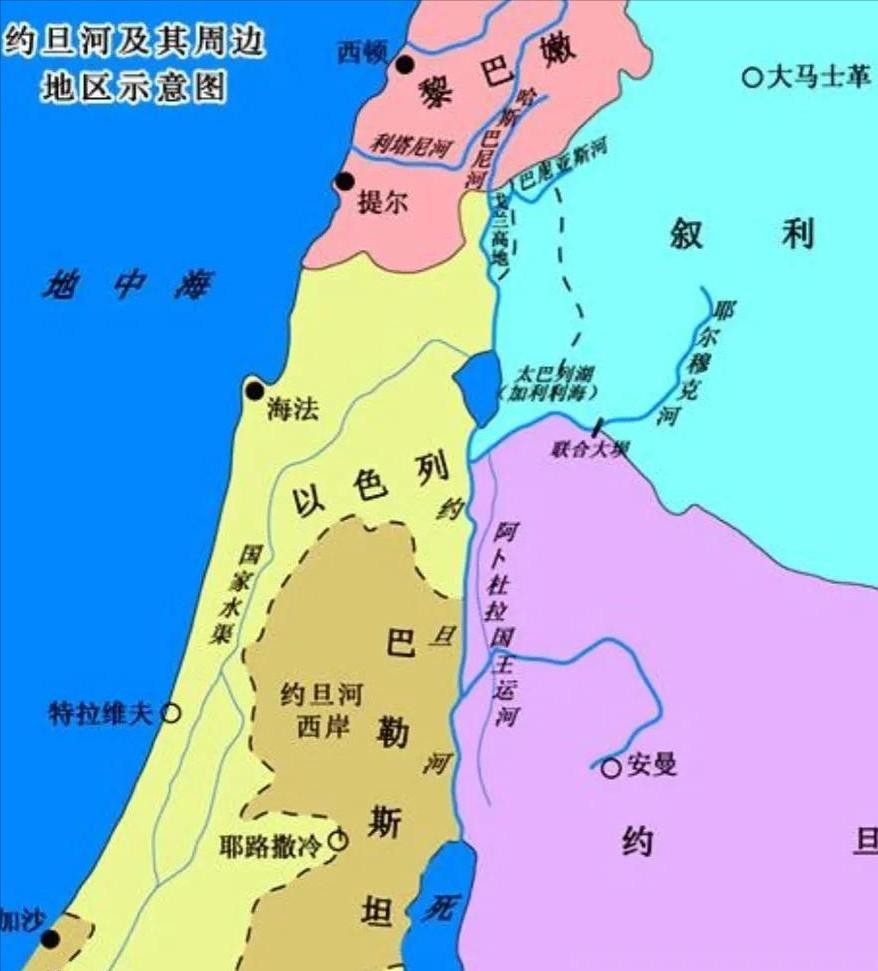 约旦河是西亚主要河流之一,发源于叙利亚境内的黑门山,自北向南注入死海,全长约360公里。约旦河流经叙利亚、以色列、巴勒斯坦、约旦。以色列多次指责叙利亚和约旦过度使用约旦河的水资源。在周边国家的过度利用之下,约旦河下游已经出现断流的危险。约旦河断流让以色列非常担忧,这是因为约旦河是以色列的命脉。