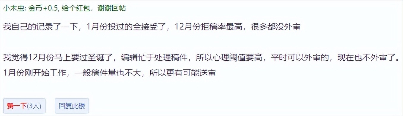 有人否定12月的投稿成功率,因为12月有圣诞节会影响编辑的心理预期,导致拒稿率升高: