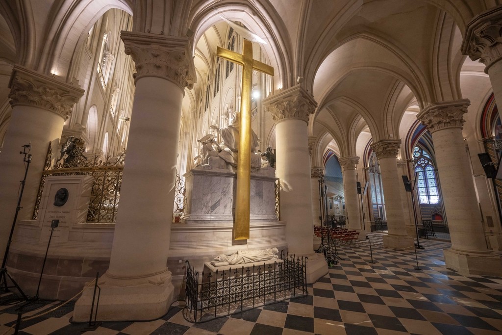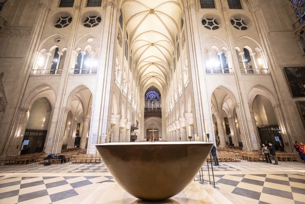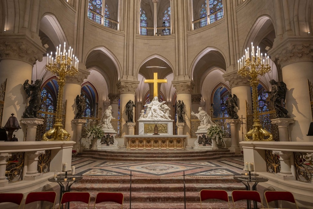 巴黎圣母院作为中世纪哥特式建筑的代表,在法国以及全世界都享有盛誉。2019年的大火使巴黎圣母院受损严重,引发了全球关注。为了能够充分准备这次开放活动,除了对艺术品的精心修复以外,工作人员在原有的油画、雕塑等作品的重组和摆放方面也精心安排,努力使艺术品的年代、风格与教堂内的位置和光线完美匹配,从而在这一天呈现出最好的效果。