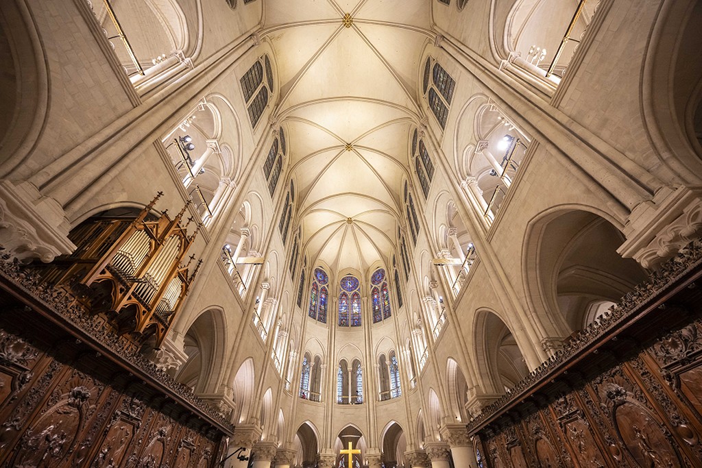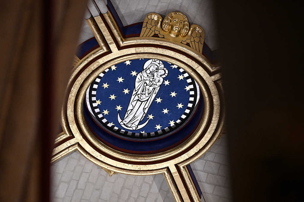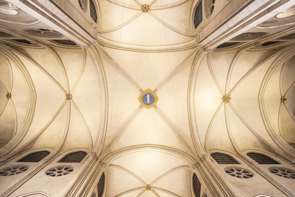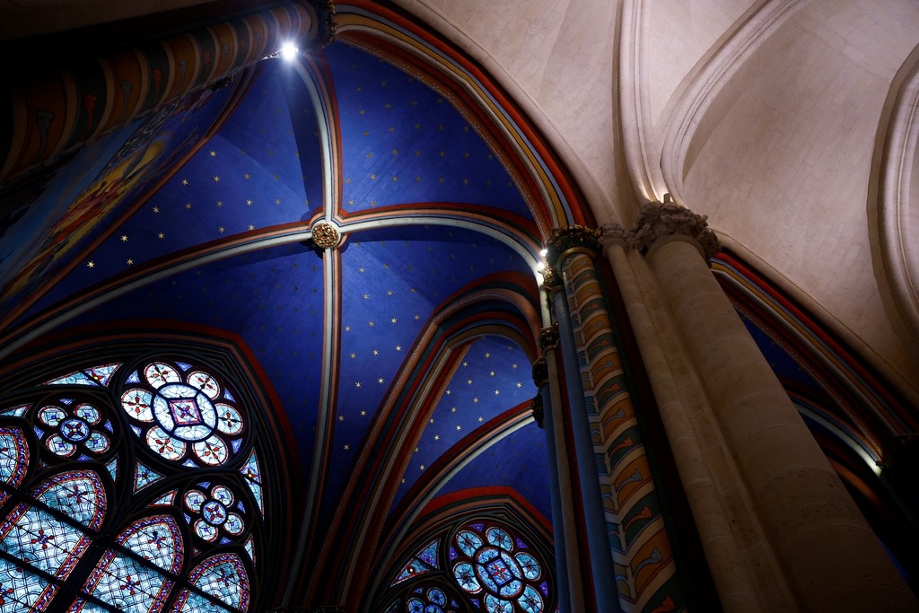 当地时间2024年12月8日,法国巴黎,巴黎圣母院修复后的石砌拱顶。