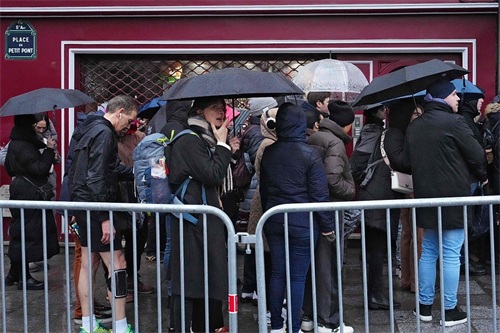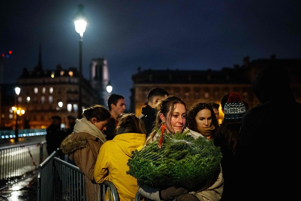 当地时间2024年12月8日,法国巴黎,民众齐聚巴黎圣母院外,等待参加首次公众开放日活动。