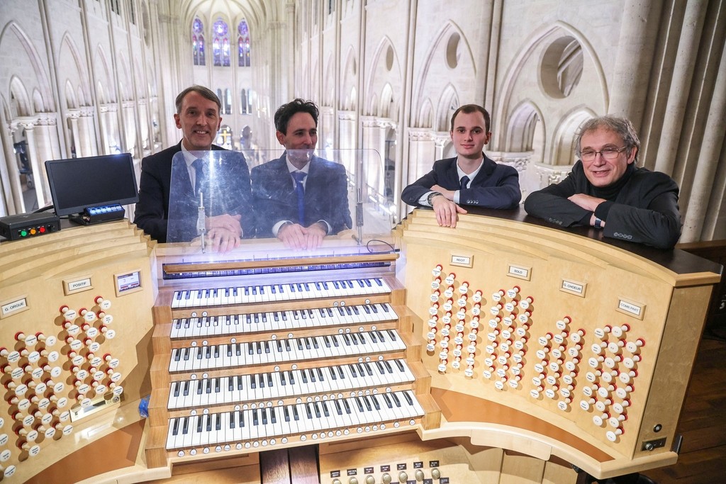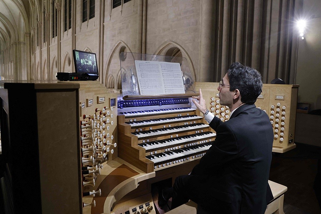 当地时间2024年12月8日,法国巴黎,一名风琴师在首次公众开放日活动中奏乐。