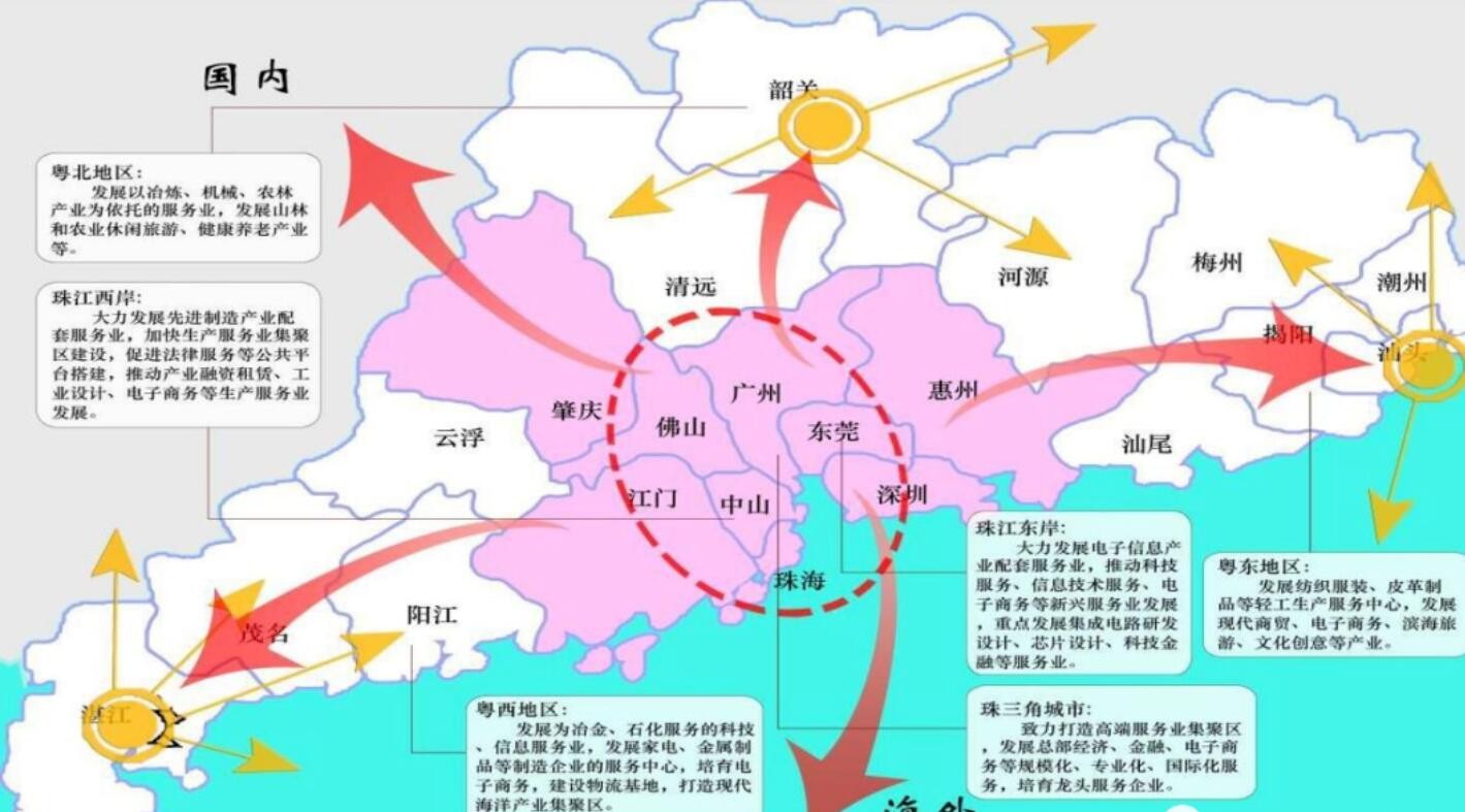 香港是世界上著名的自由港和国际大都市,是全球第三大金融中心;深圳、广州拥有大量的高科技人才,吸引了大量高科技企业;而珠三角其他城市则是全国经济发展的重要引擎,具有先进制造业基地和现代服务业基地。