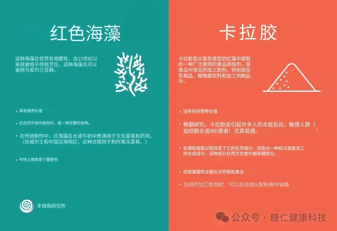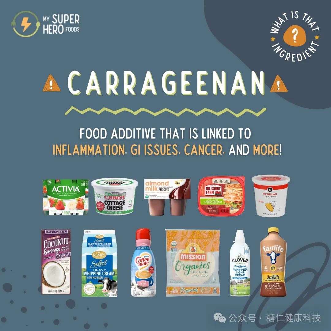法国一个研究团队通过分析10万参与者的数据发现:常见乳化剂与2型糖尿病风险增加3-15%相关,其中卡拉胶以及总卡拉胶摄入量每增加100mg/d,风险增加3%。