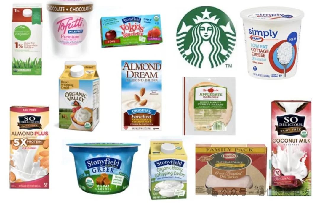 乳制品:鲜奶油、巧克力牛奶、冰淇淋、奶油、干酪、奶粉等