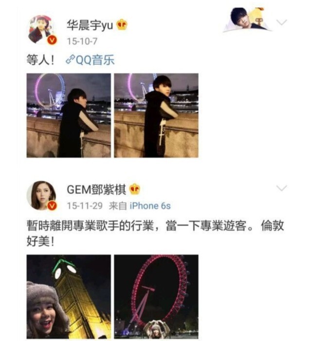 2016年,邓紫棋华晨宇同晒摩天轮背景照片,