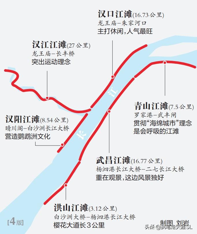 武汉的江滩长达百余公里,可谓是大江长滩打造的城市。武汉市内共有六大江滩,但是你分得清么?不妨借用一张图来纵览武汉六大江滩的分布、长度、方位及各自特点。相信看完下图,你就再也不会傻傻分不清哪是哪了?