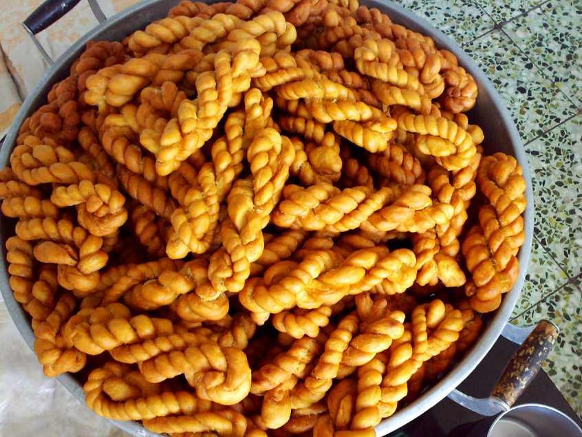 馓子麻花在北方广为流行,馓子麻花古称寒具、环饼,远在战国时就成为美食,在秦汉时,因馓子、麻花能冬春久贮不坏,是寒食节代替熟食的食品之一,被称为寒具。将白糖或红糖、碱、明矾、桂花等和发酵好的面和在一起,和成不沾手、不沾盆、面团光滑即成。面上抹层花生油,把面醒一段时间。把醒好的面搓条,揪成约二寸长的面剂,蘸上芝麻、水,盖上湿布,再醒一段时间,把面剂抻成细细的面条,来回缠绕成馓子、麻花形状,用花生油炸成酥、脆、香、甜的金黄色,这就是广为流行的民间小吃、点心,馓子麻花。