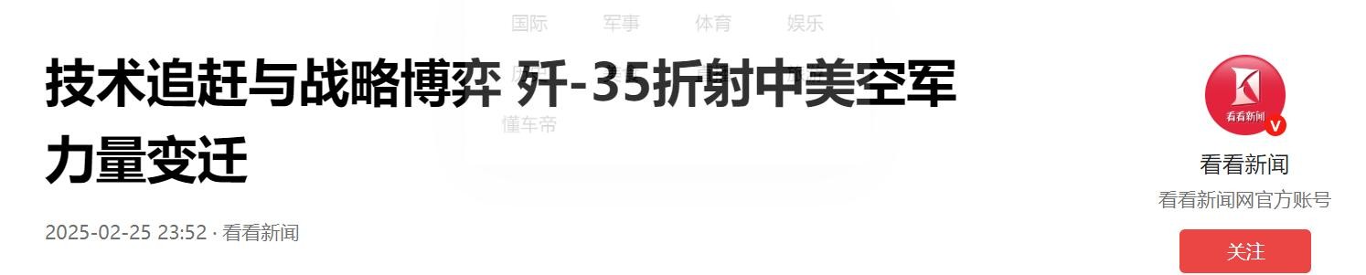 看看新闻在2025-02-25关于《技术追赶与战略博弈 歼-35折射中美空军力量变迁》的报道