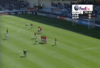 98世界杯巴拉圭首战,对手是斯托伊奇科夫领衔的保加利亚。这场0-0的平局,诞生了世界杯史上的一个“第一次”:第73分钟,巴拉圭获得任意球机会,队长奇拉维特冲向罚球点,距离大门将近30米处,奇拉维特左脚弧线球绕过人墙直窜死角,可惜被门将神勇化解,遗憾的错过了世界杯决赛阶段“第一次”守门员进球的壮举。