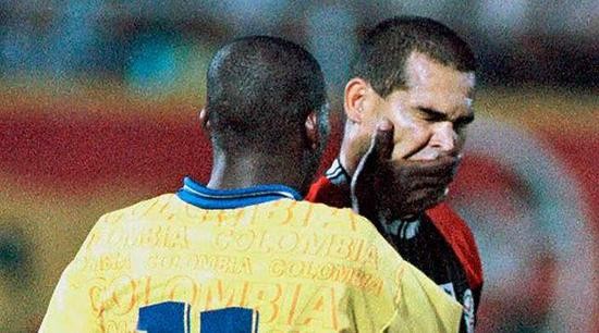 吃到红牌的奇拉维特走下场,路过哥伦比亚替补席,正好阿斯普里拉坐在那里。奇拉维特再次使出左勾拳,正中阿斯普里拉面部!