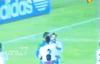 1996年阿根廷联赛萨斯菲尔德VS圣洛伦索,31岁的奇拉维特,与1986年世界杯冠军得主、34岁的鲁杰里杠上了。