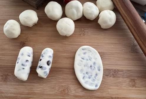 接着,取一小块面团,用擀面杖将其擀成一个厚度适中的面皮。这一步不需要特别的技巧,只要擀得均匀,蜜豆包进去后,不会露馅。