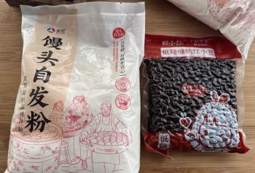 首先,我们需要准备好自发粉和蜜红豆。大家可以在家里常备一些自发粉,它真的非常适合馒头新手,因为你不需要再去研究酵母的用量,直接加水就能完成面团的发酵。