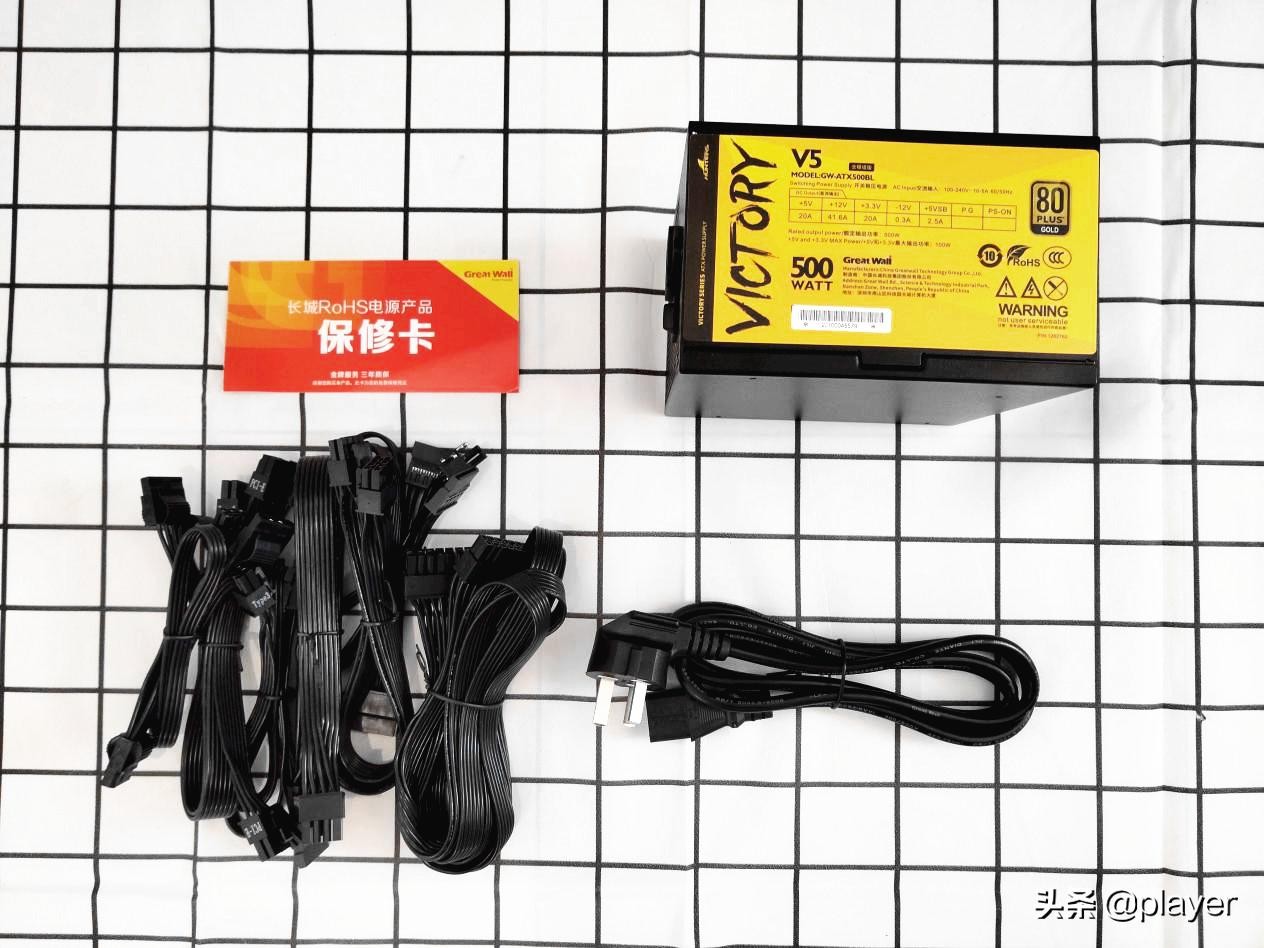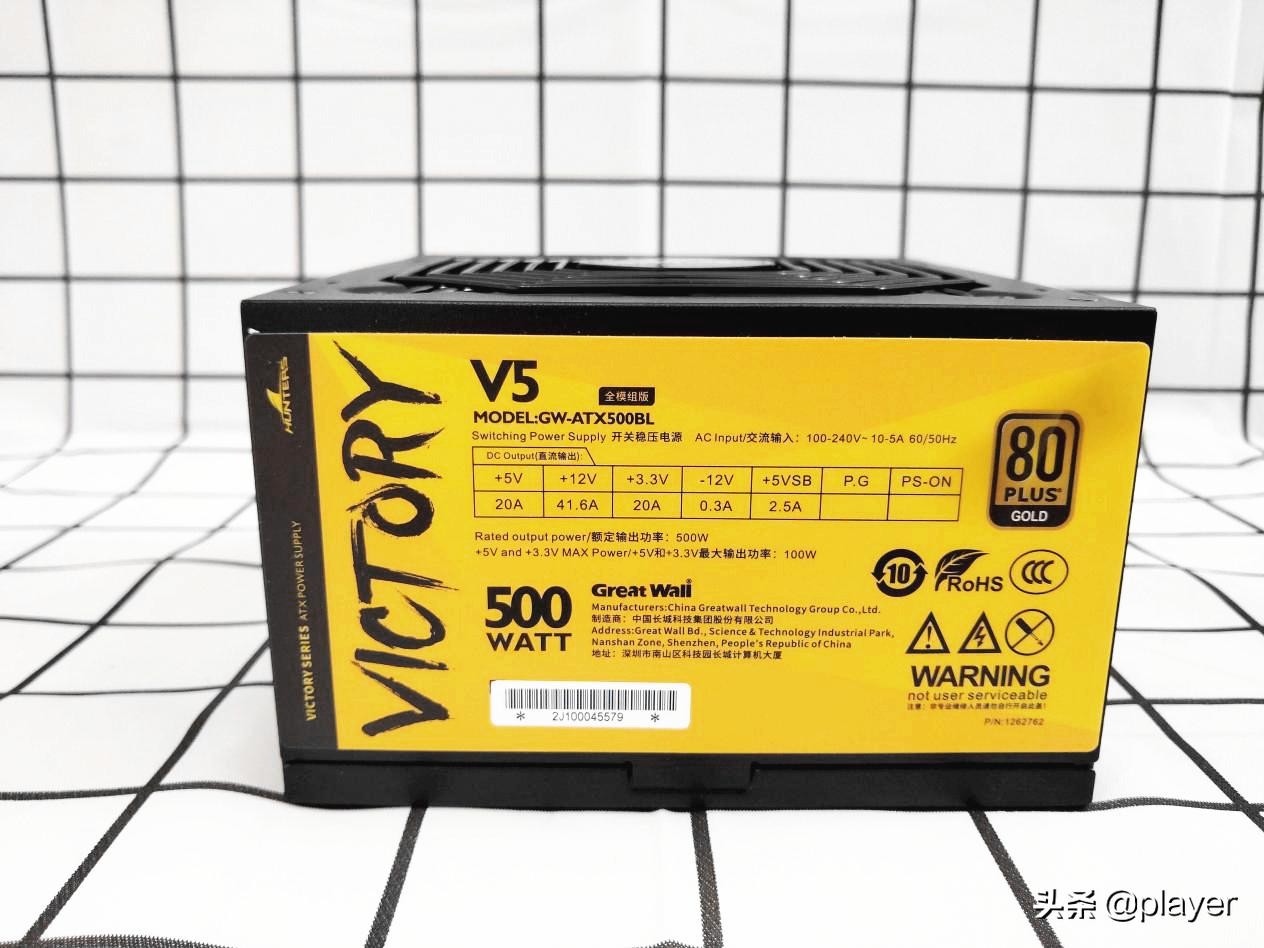 长城在国内电源是佼佼者,也推出了电竞款电源,今天开箱的是长城V5金牌全模组电源500W(GW-ATX500BL)包装颜色来说,色彩鲜艳,活力感满满,victory对产品充满了信心。