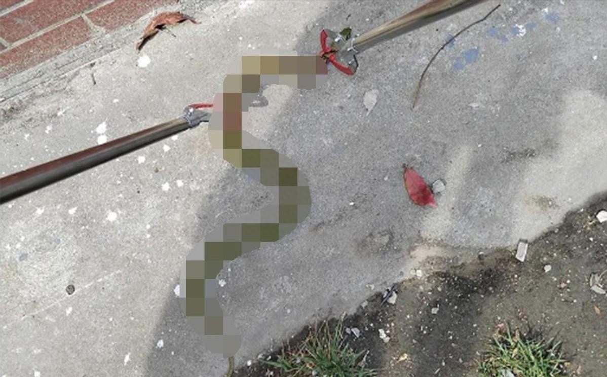 在消防员的帮助下,这三条蛇成功的被捞了上来,不看不知道,一看吓一跳,在水里看起来并没有那么大的蛇被捞上来后,竟然足足有两米长。