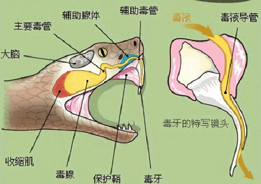 它的毒素会通过大牙分泌出来,当他抓到猎物后,它会用自己的大牙给猎物造成伤口,随之再将毒素输入到猎物身体中,从而导致毒素和猎物的血液进行接触。